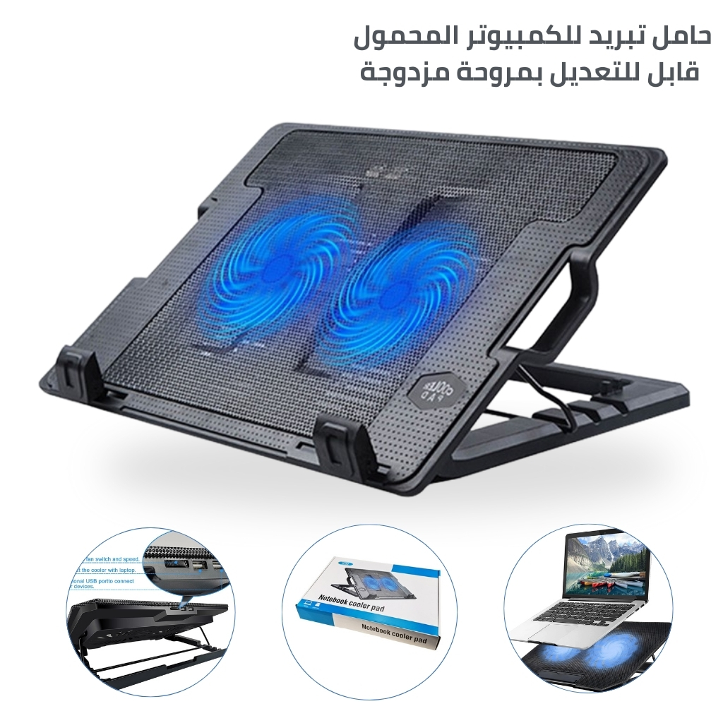 حامل تبريد للكمبيوتر المحمول قابل للتعديل بمروحة مزدوجة